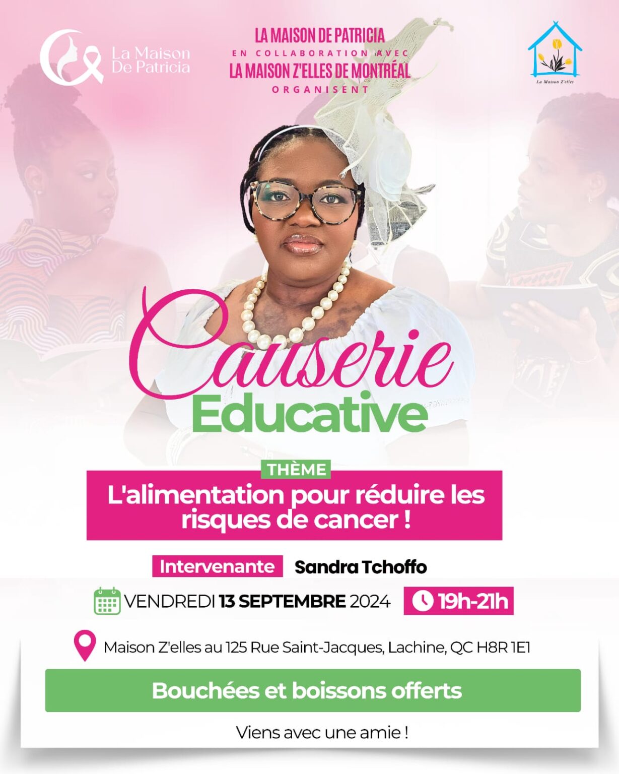 Le 13 septembre 2024, en collaboration avec la Maison Z’elles, la Maison de Patricia a organisé une causerie éducative sous le thème “L’alimentation pour réduire le risque du cancer”. Aucours de cette causerie, Mme Sandra Tchoffo, naturopathe et herboriste, a sensibilisé 30 participants en présenciel et 14 participants en distanciel sur les meilleures pratiques aliementaires et les différents types d’aliments à consommer pour prévenir le cancer. Cette activité a été une grand succès. Vous verrez ci-dessous les photos et vidéos souvenir de cette activité.